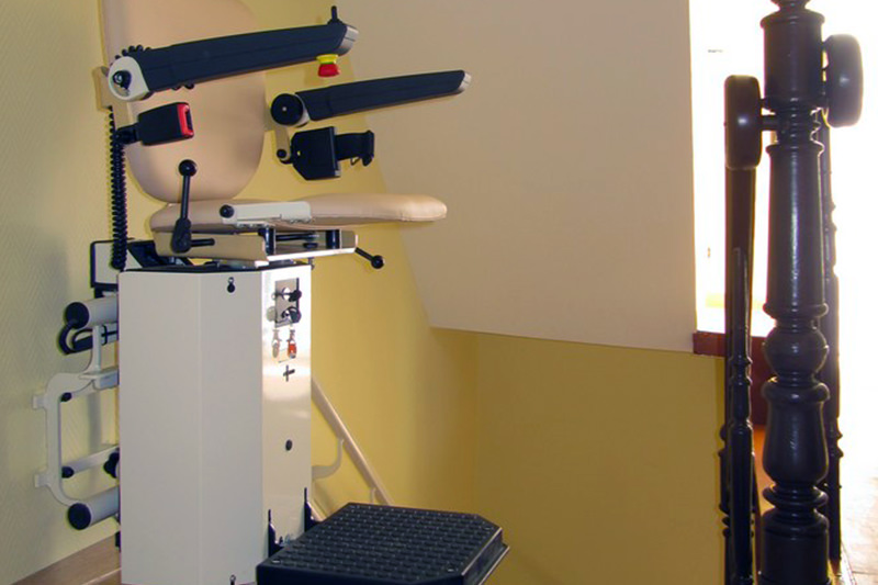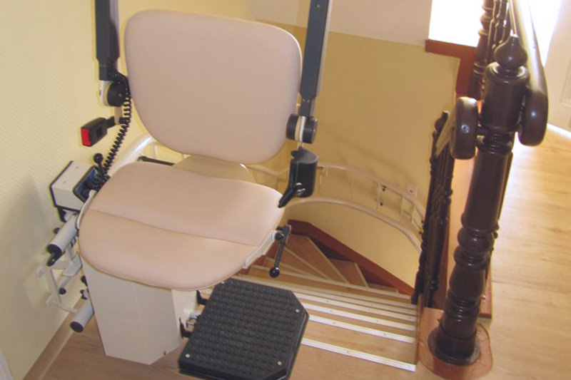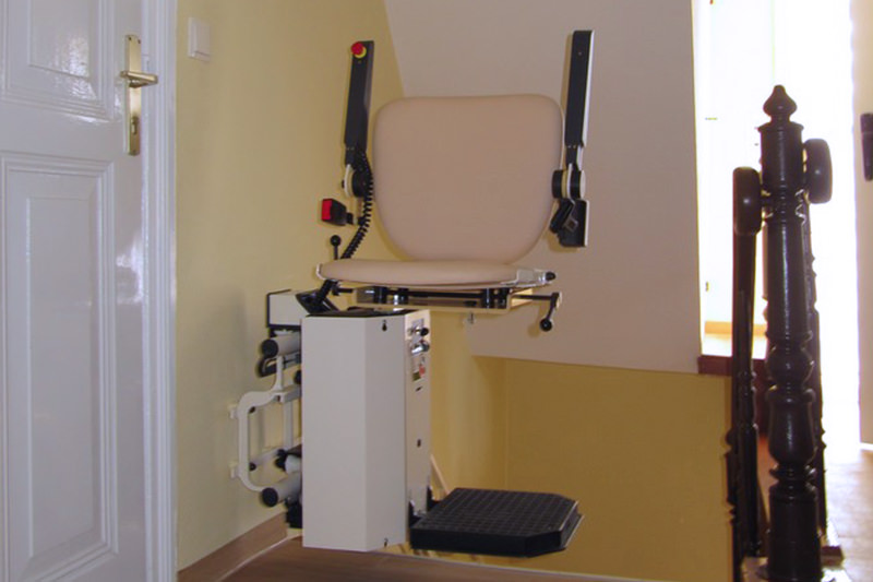 Der Außenläufer umfährt die Treppe an der Wandseite. Ein häufiger Einsatz sind Treppen mit waagerechten Podesten. Hier können die Podeste waagerecht in den Kurven abgefahren werden. Durch die platzsparende Montage an der Wand ist der sichere Auftritt der einzelnen Stufen weiterhin gewährleistet.